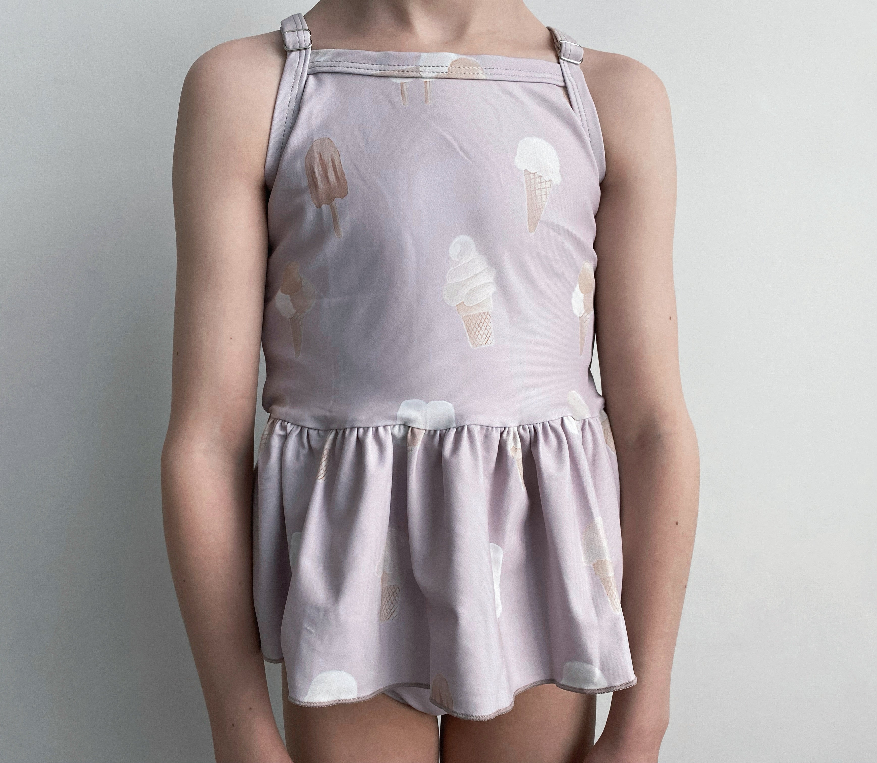 Minimono.ca x Current Tyed Children's UPF50+ Rashguard Ruffle Swimsuit Canada. We are absolutely thrilled to offer our exclusive design, the Sweetest Ice Cream covered swimsuits! These suits were proudly designed by minimono.ca and are ONLY available at minimono.ca!