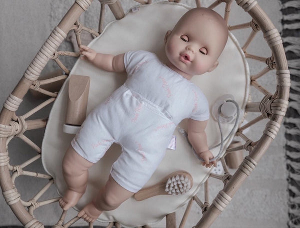 Our beautiful new Soft Body doll, Sonia by Award Winning European designer Paola Reina. Made in Spain according to the highest doll making traditions. She arrives in a beautiful gift box, in a gorgeous complete outfit including softest pants, a tunic top, a grey headband and her pacifier which perfectly fits in her mouth. She has sleepy eyes that close when she is laid down, and open when she is held upright again.