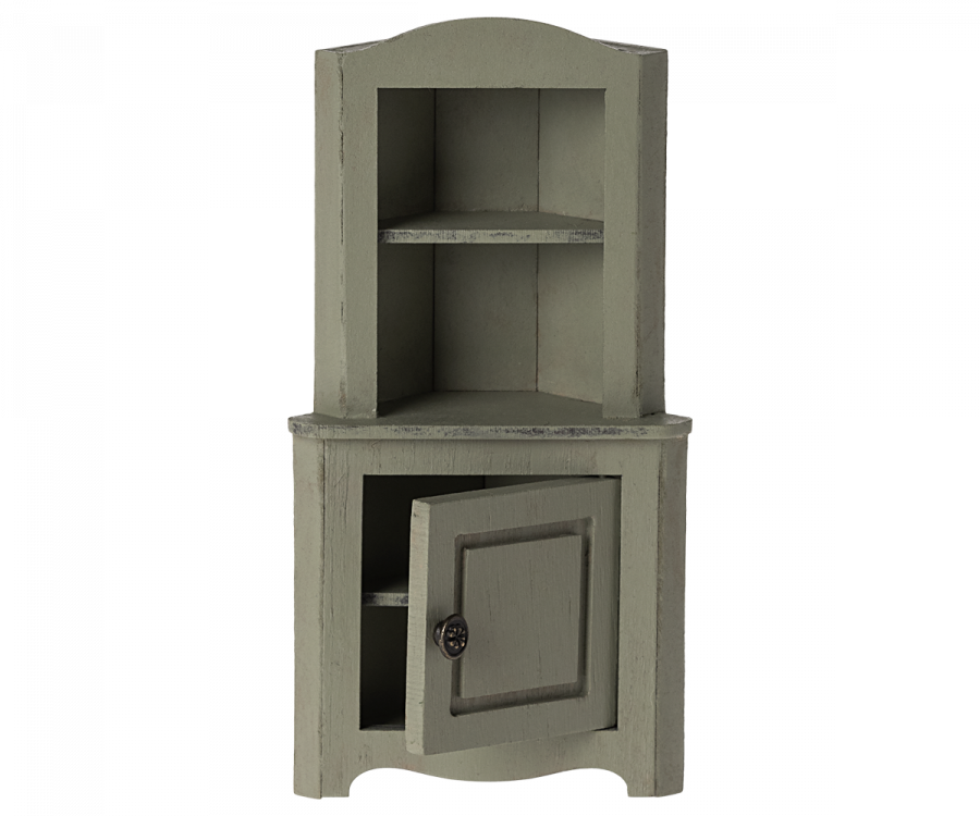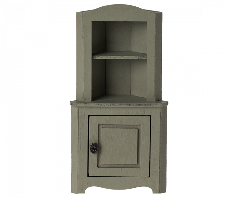 The perfect closet to store a lot of stuff. It fits perfectly into a corner so it will look stylish in the home decoration. It has a vintage finish - variation in the paint may occur. This closet fits perfectly into the mouse hole farm house.